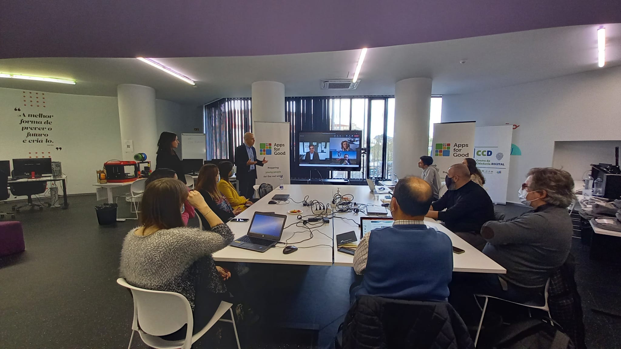 A Casa do Conhecimento de Valongo recebeu o 4º Encontro Anual dos NINJA do Apps for Good. Os NINJA são professores/as que já aplicaram ou que aplicam a metodologia do programa e que partilham as suas experiências para, em conjunto, melhorarmos as suas práticas educativas! Durante a tarde, estiveram rodeados de Tecnologias Imersivas! Foi um dia intenso mas muito produtivo!